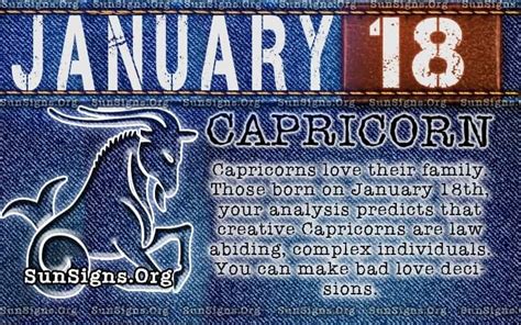 Individuals born on January 18th belong to the zodiac sign of Capricorn, influenced by the disciplined and determined planet Saturn. They possess a strong work ethic, ambition, and a practical approach to life. While their strengths include determination and practicality, they may struggle with work-life balance and being overly critical of themselves and others.